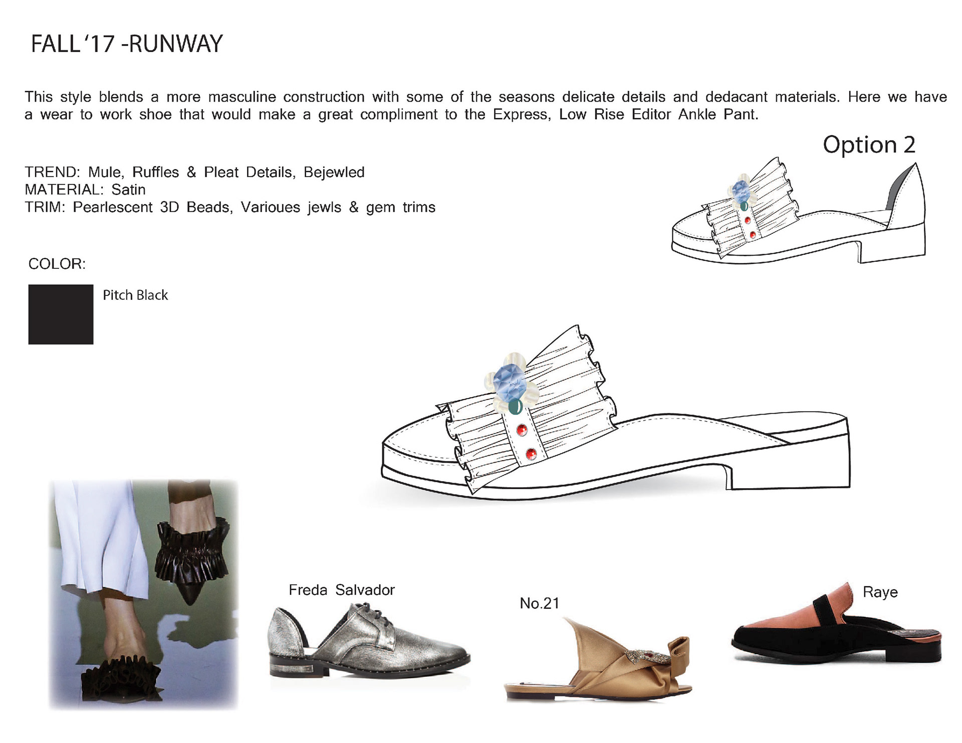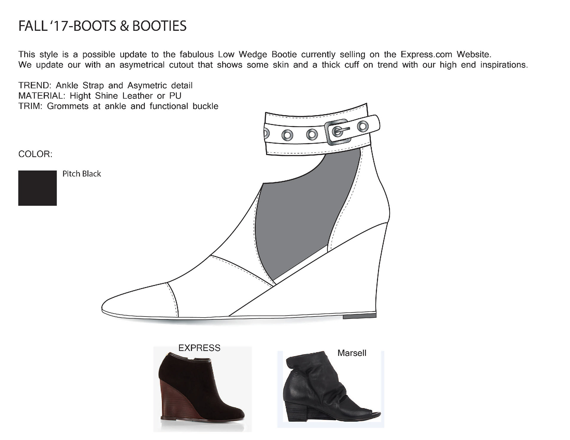 1st is a project I did to show case my research and design skills for footwear based on the Express Brand and Customer Following that are examples of illustrations and designs I did while at Express